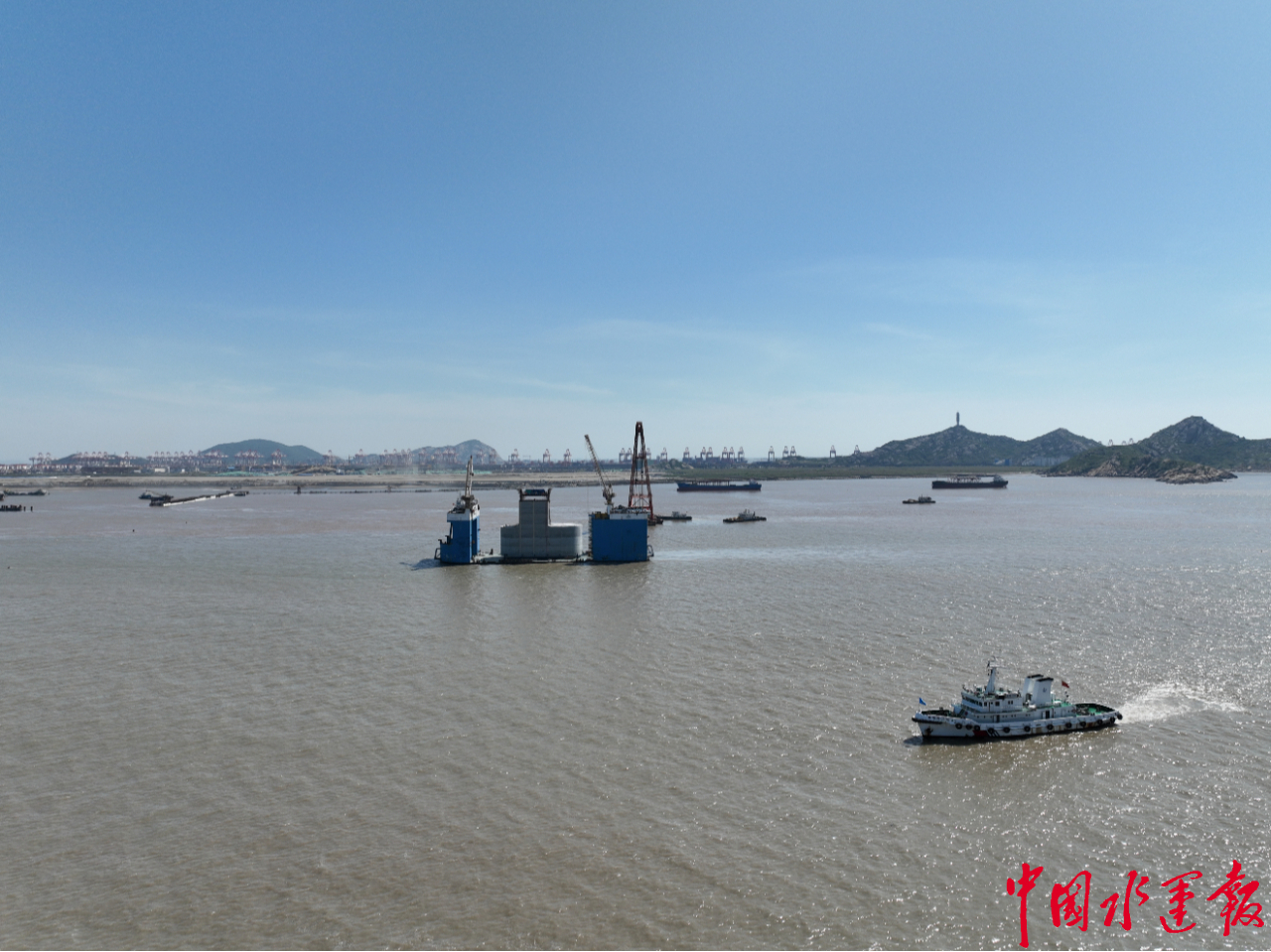 公海赌网址710客服小洋山北工作船码头迎来施工关键节点最后一个大圆桶基础结构安装